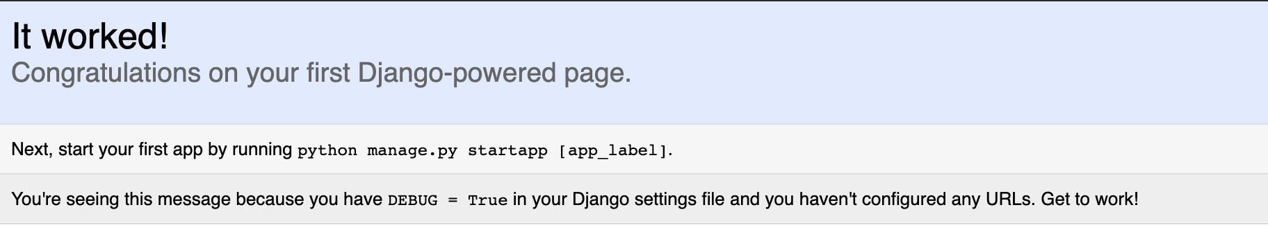 http://127.0.0.1:8000/에 Django page가 구성됩니다