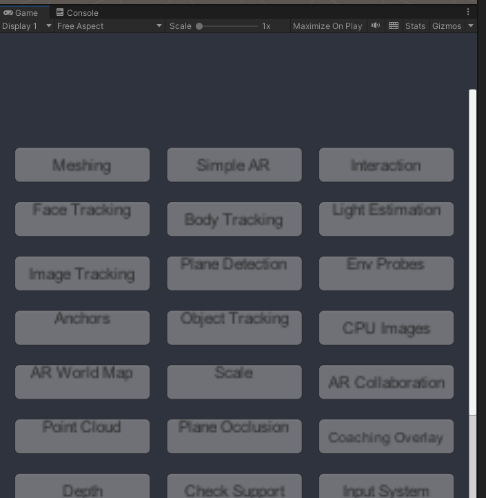 AR Foundation 기능 별로, 별도로 Scene이 구성되어있어서 Test 하기 용이합니다